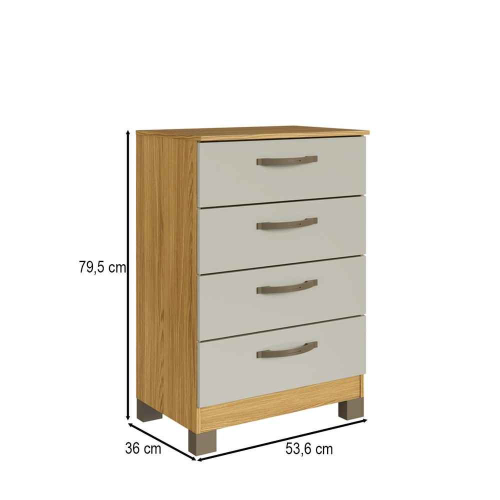 Cômoda Basic 4 Gavetas Ipê/Cristalo - Decibal