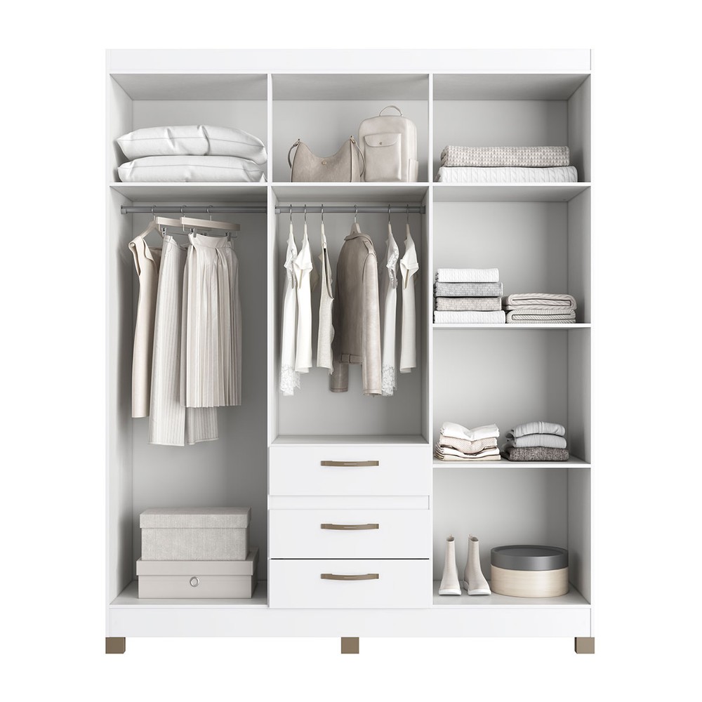 Guarda-Roupa Casal 6 Portas 3 Gavetas Rp3638 Branco - Decibal