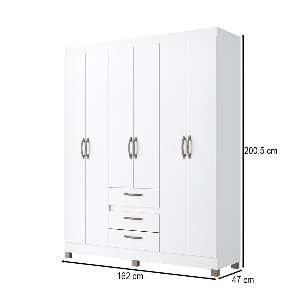 O(a) Guarda-Roupa Casal 6 Portas 3 Gavetas Rp3638 Branco - Decibal é produzido em MDP na escala de brilho Fosco, e possui um grau de dificuldade de montagem: Médio.
