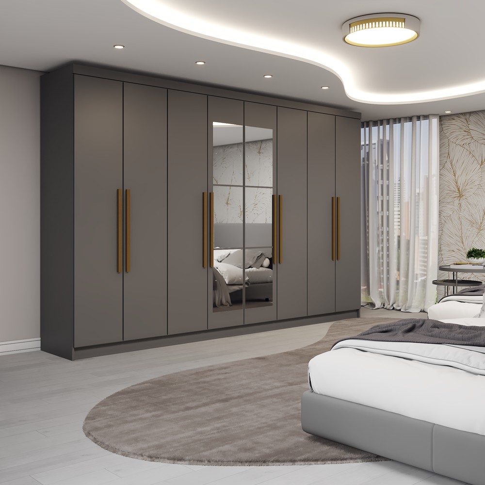 O(a) Guarda-Roupa Casal Odisseia 8 Portas 4 Gavetas com Espelho Onix - Panorama Móveis é produzido em MDP na escala de brilho Brilho, e possui um grau de dificuldade de montagem: Médio.