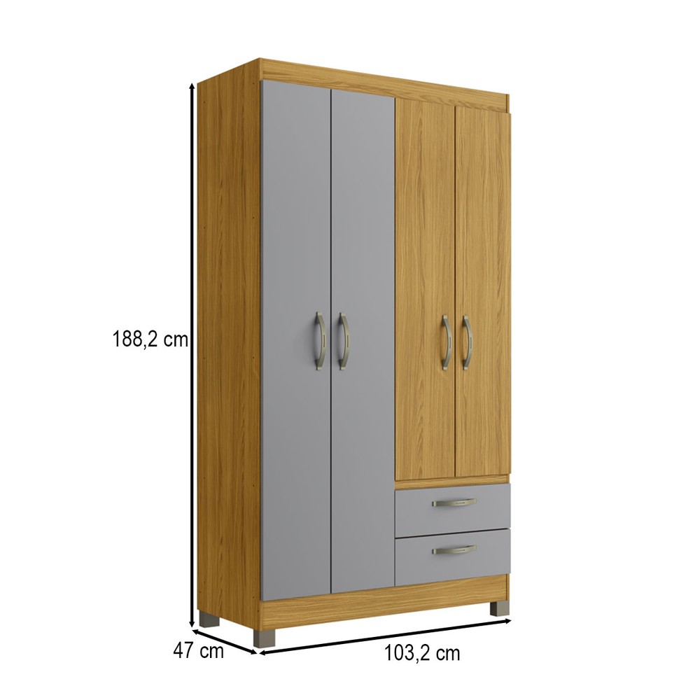 Guarda-Roupa Solteiro 4 Portas 2 Gavetas Rp2426 Ipê/Griseo - Decibal