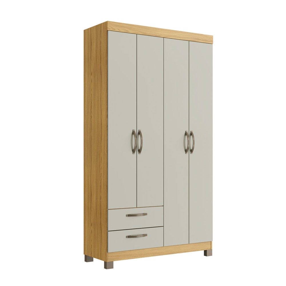 Guarda-Roupa Solteiro Basic 4 Portas 2 Gavetas Ipê/Cristalo - Decibal
