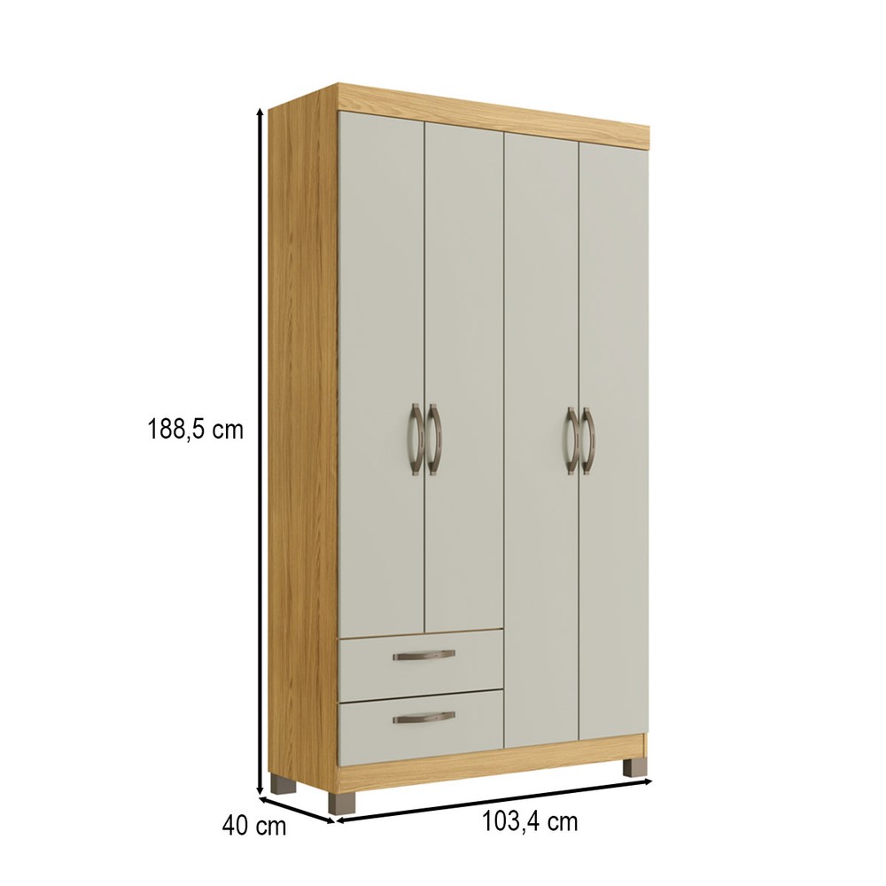 O(a) Guarda-Roupa Solteiro Basic 4 Portas 2 Gavetas Ipê/Cristalo - Decibal é produzido em MDP na escala de brilho Fosco, e possui um grau de dificuldade de montagem: Médio.